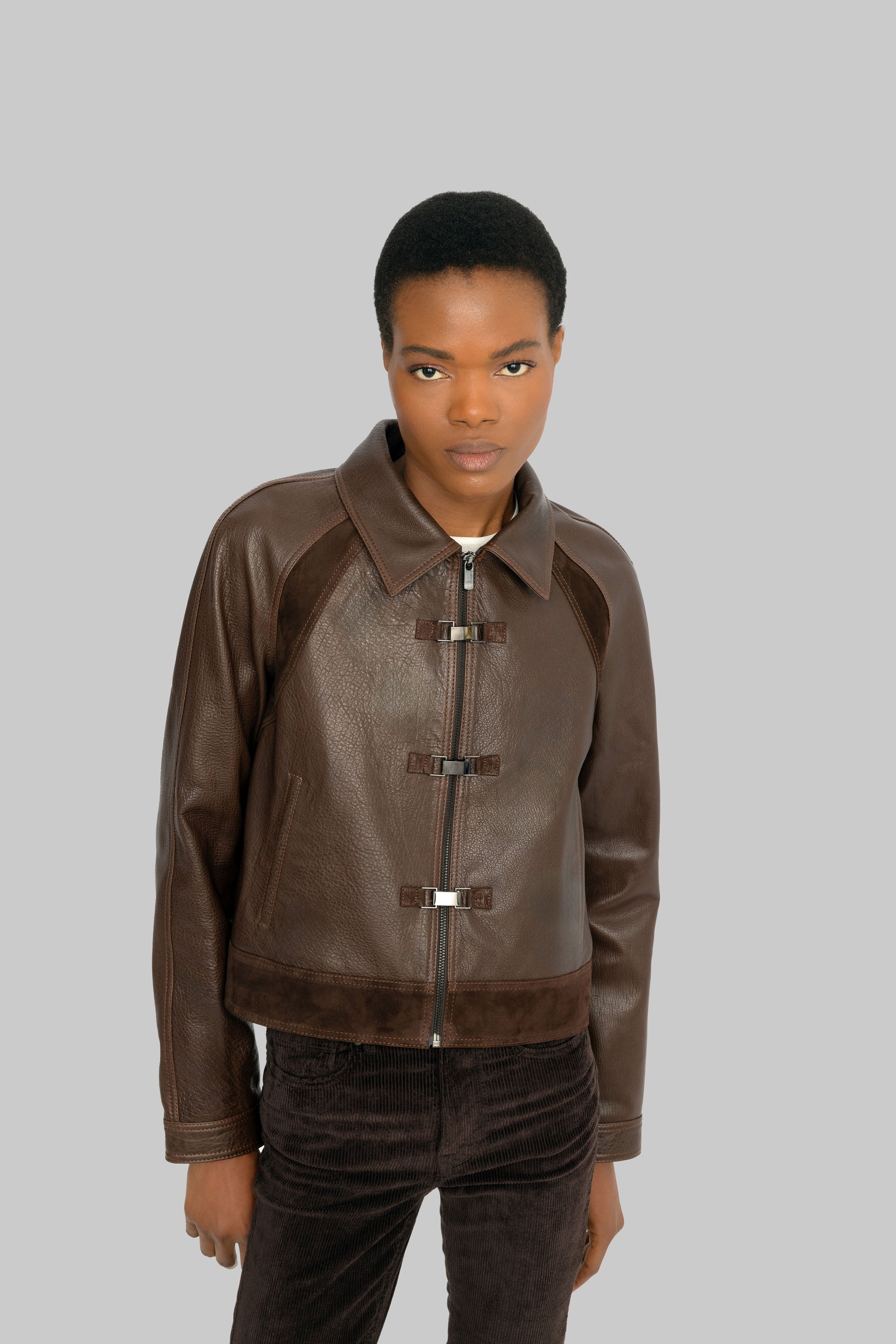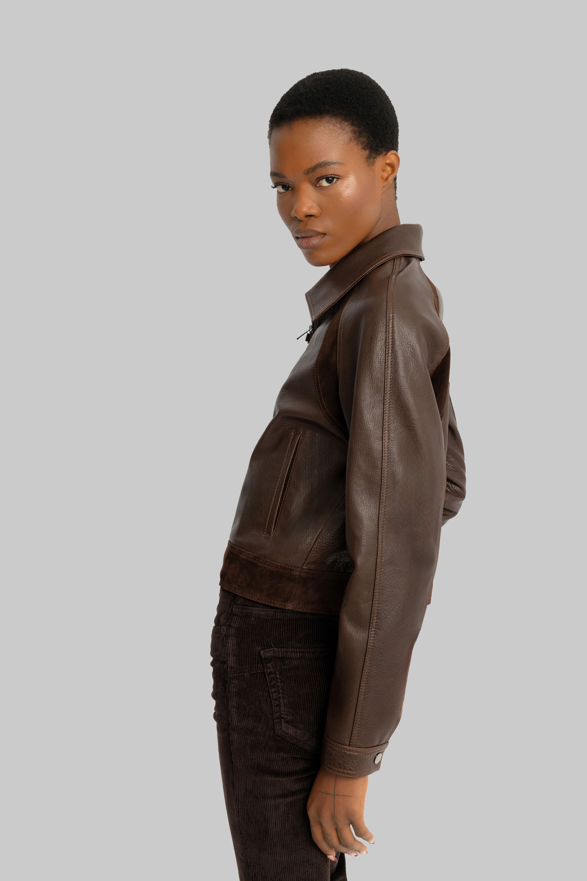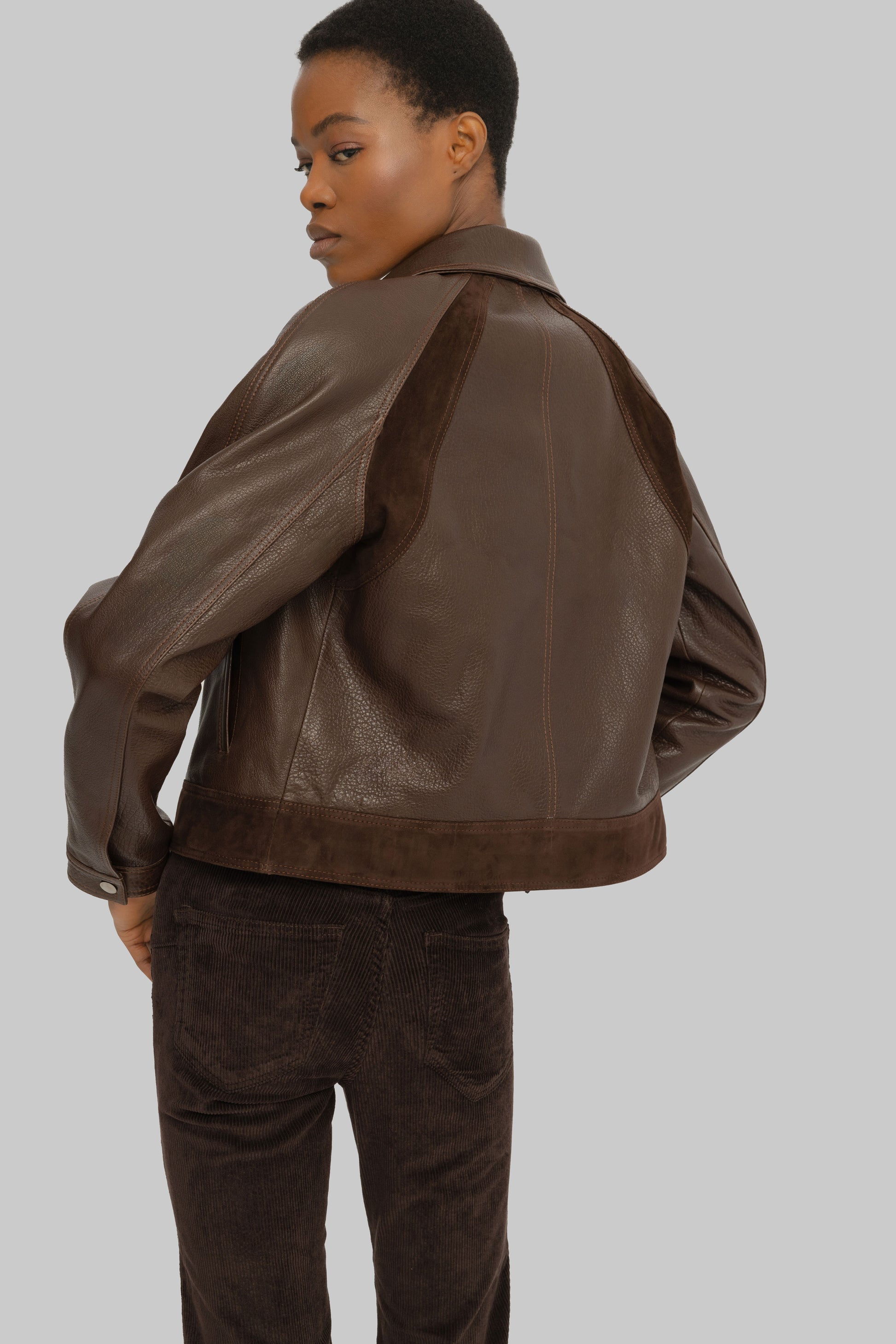 Zamansız bir parça olan Madrid Jacket, kısa ve normal kesimiyle öne çıkıyor. Jumbo kuzu derisi ile süetin birleşimiyle dikkat çekiyor. Raglan kolları, zarif ve vücuda oturan bir silüet oluştururken, ön kısmı üç kapama detayıyla vurgulanmıştır. Daha oversize bir görünüm için bir beden büyük tercih edebilirsiniz. Şık ve zahmetsiz bir stil sunuyor.