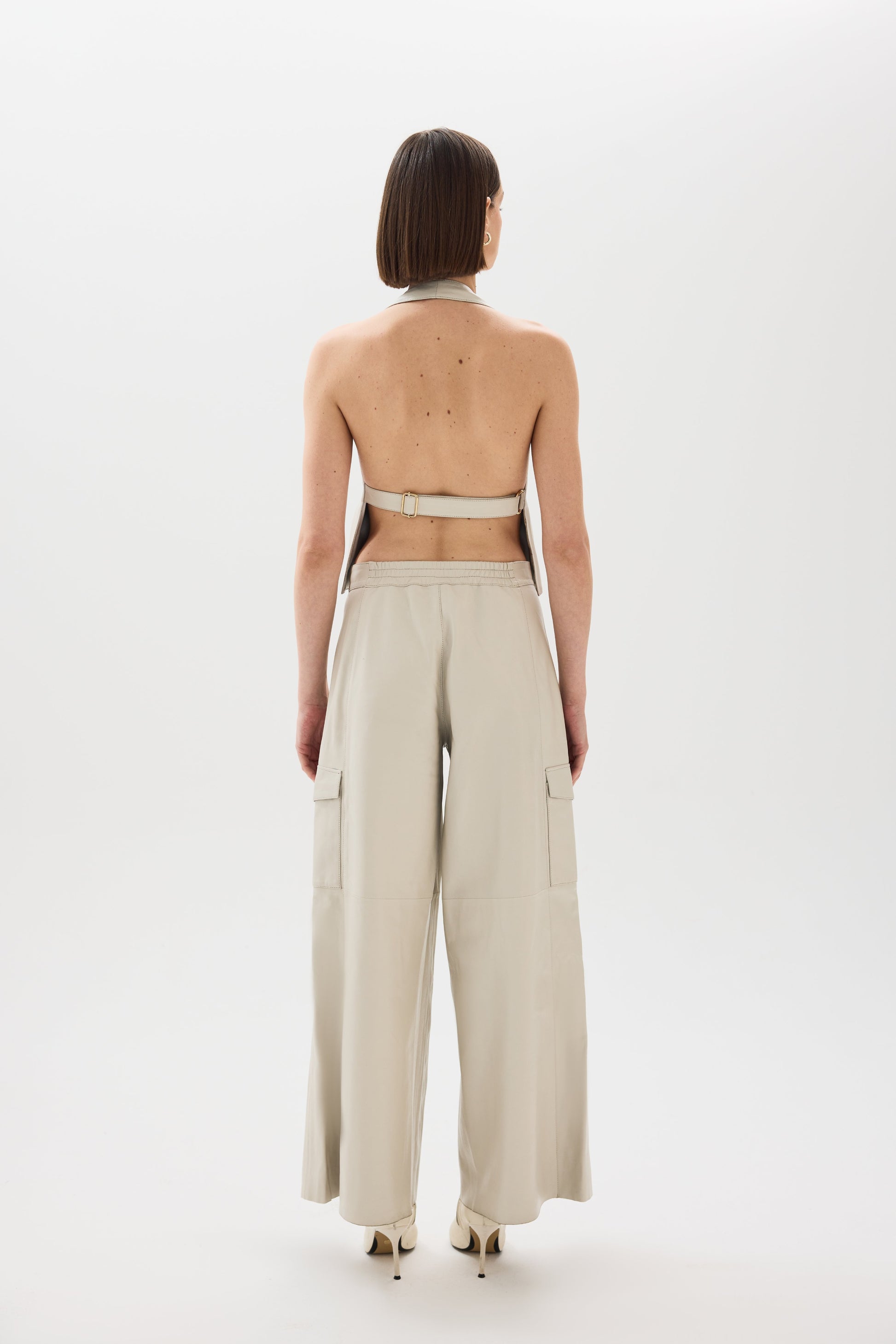 Marbella Pantolon, kuzu derisinden el işçiliğiyle üretilmiş modern zarafeti ve cesur minimalizmi yansıtan bir parçadır. Rahat, bol paça bir tasarıma sahip olan bu pantolonlar, elastik bel bandı ve yanlarda iki cep ile tamamlanmıştır. En şık görünüm için Marbella Top ile kombinleyebilirsiniz.
